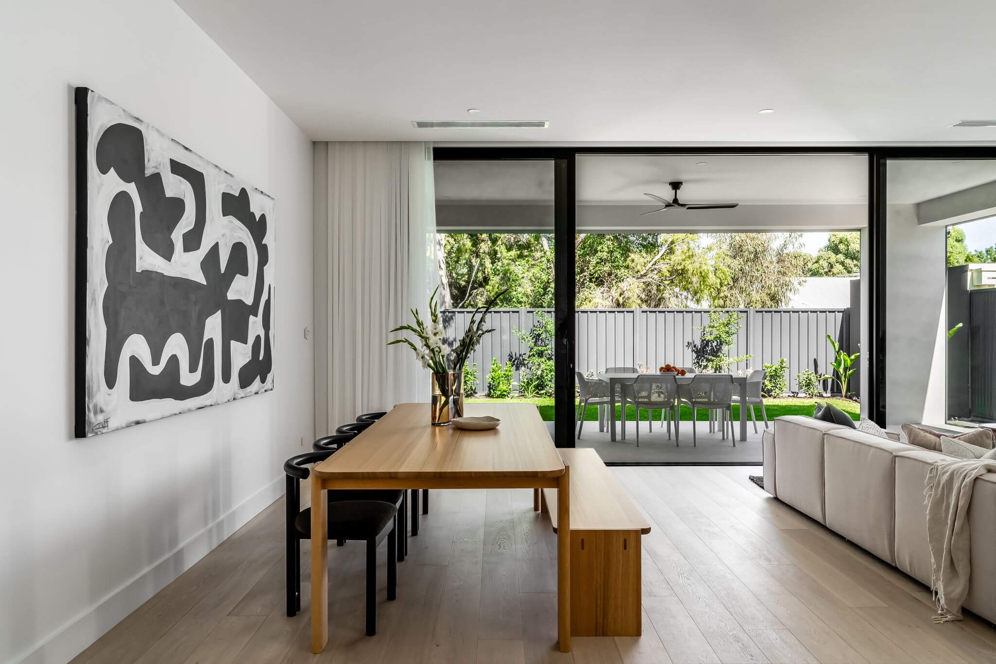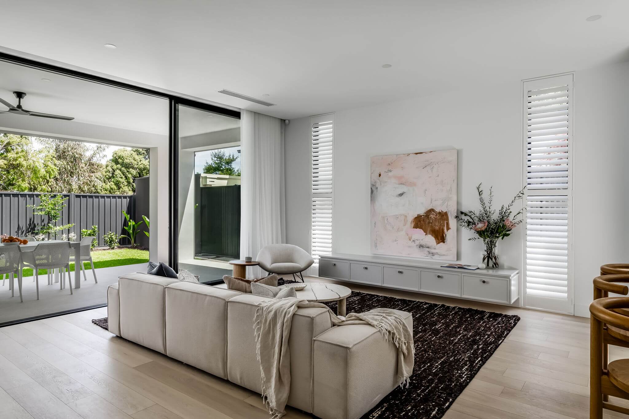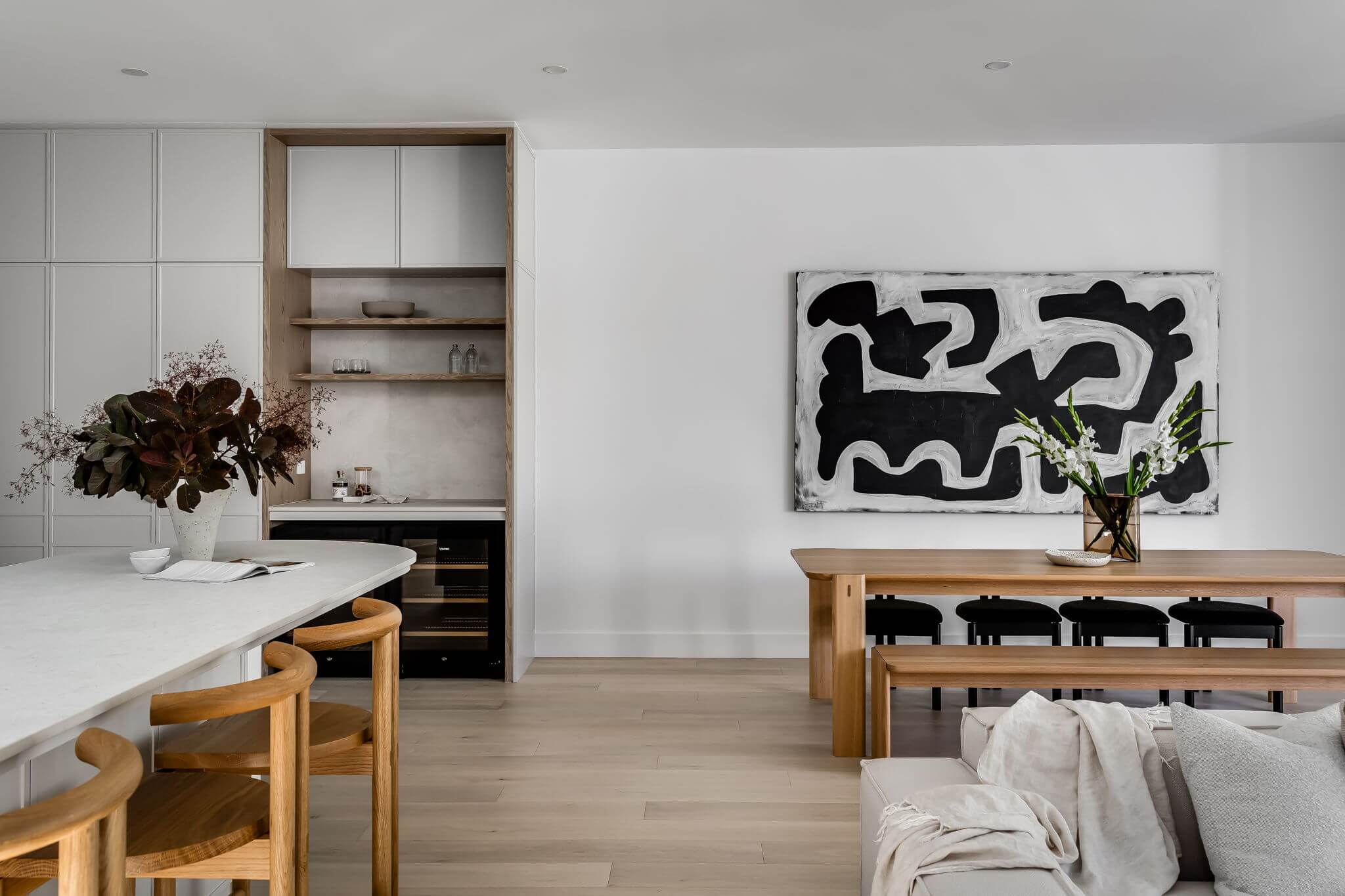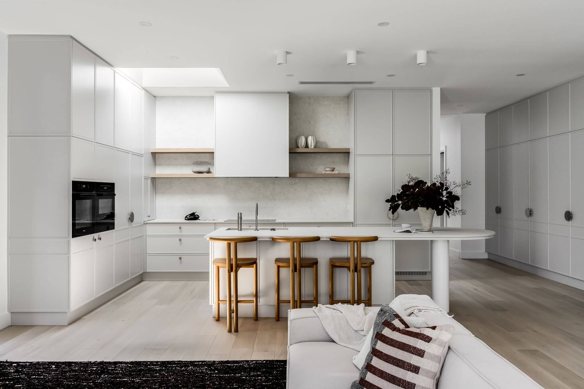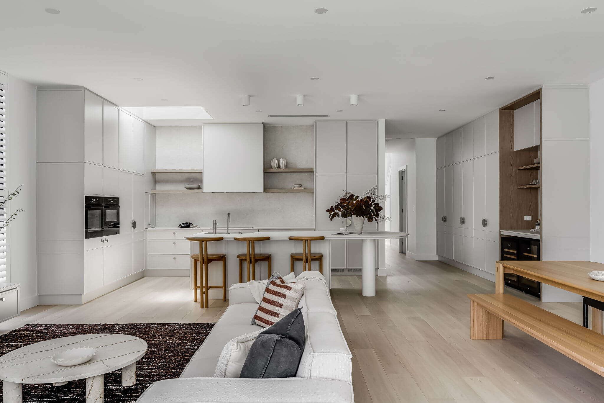 This architecturally designed new build in Dulwich, South Australia, features premium European Oak flooring expertly installed by FloorCraft. Our team completed full subfloor preparation before laying Alta European Oak Plank (190 x 1900 x 15/4 mm) throughout the home, ensuring a flawless foundation and seamless finish.