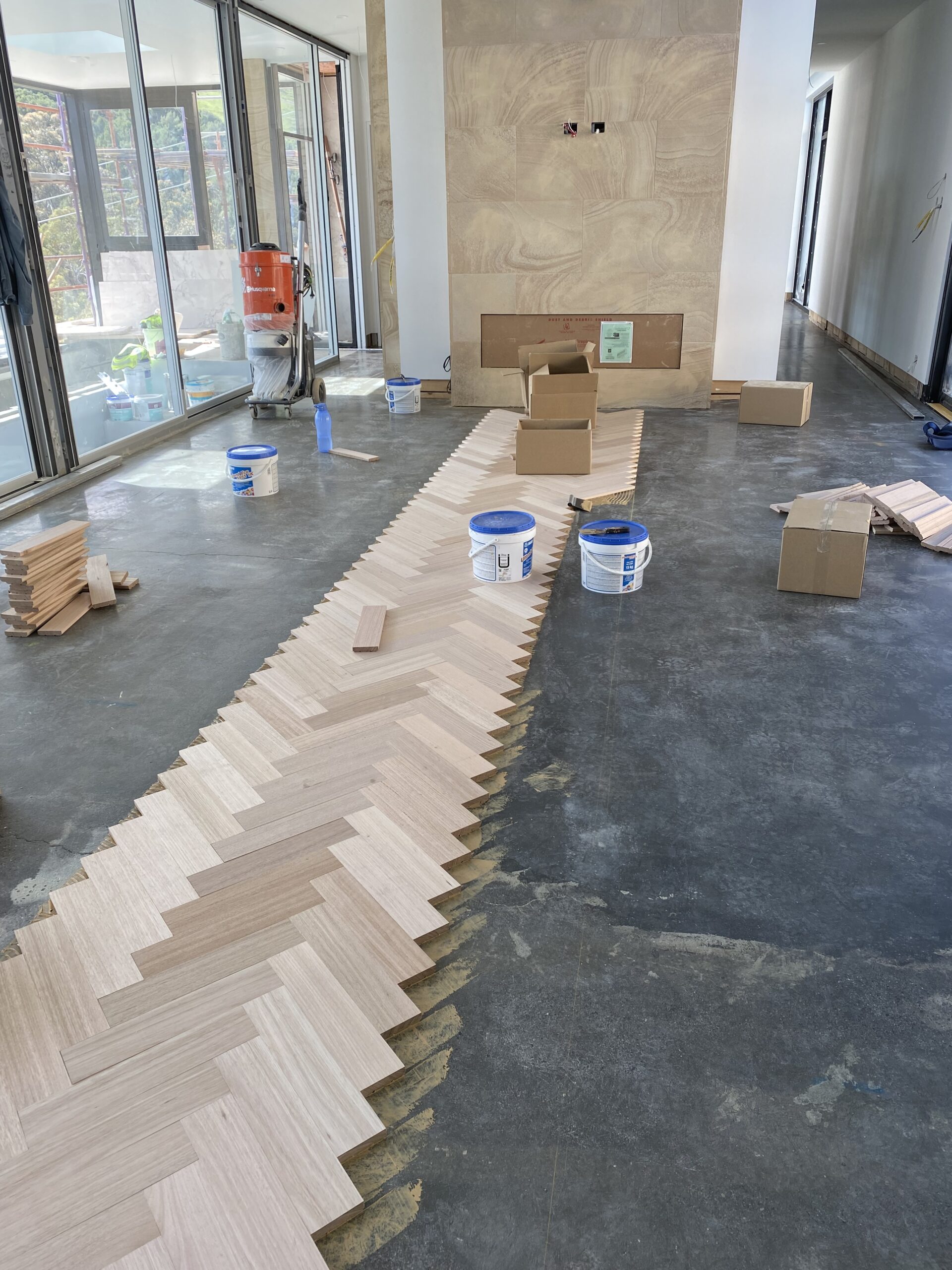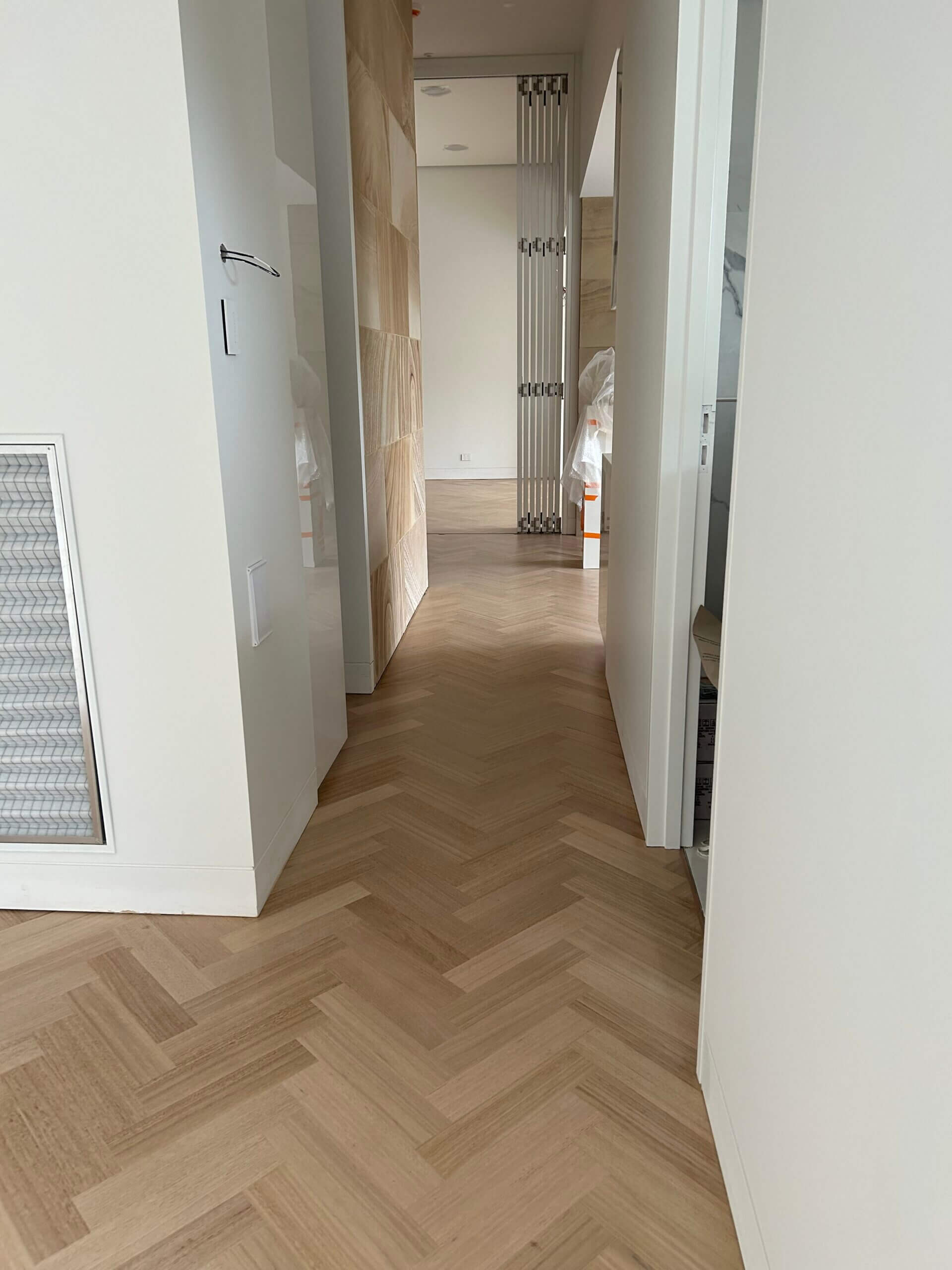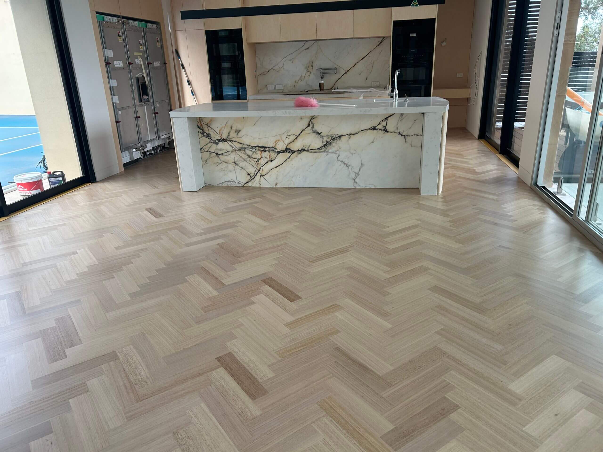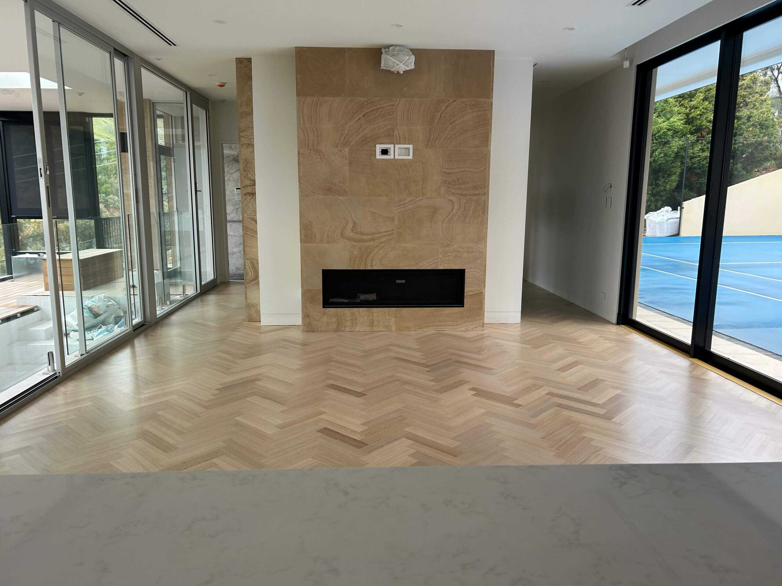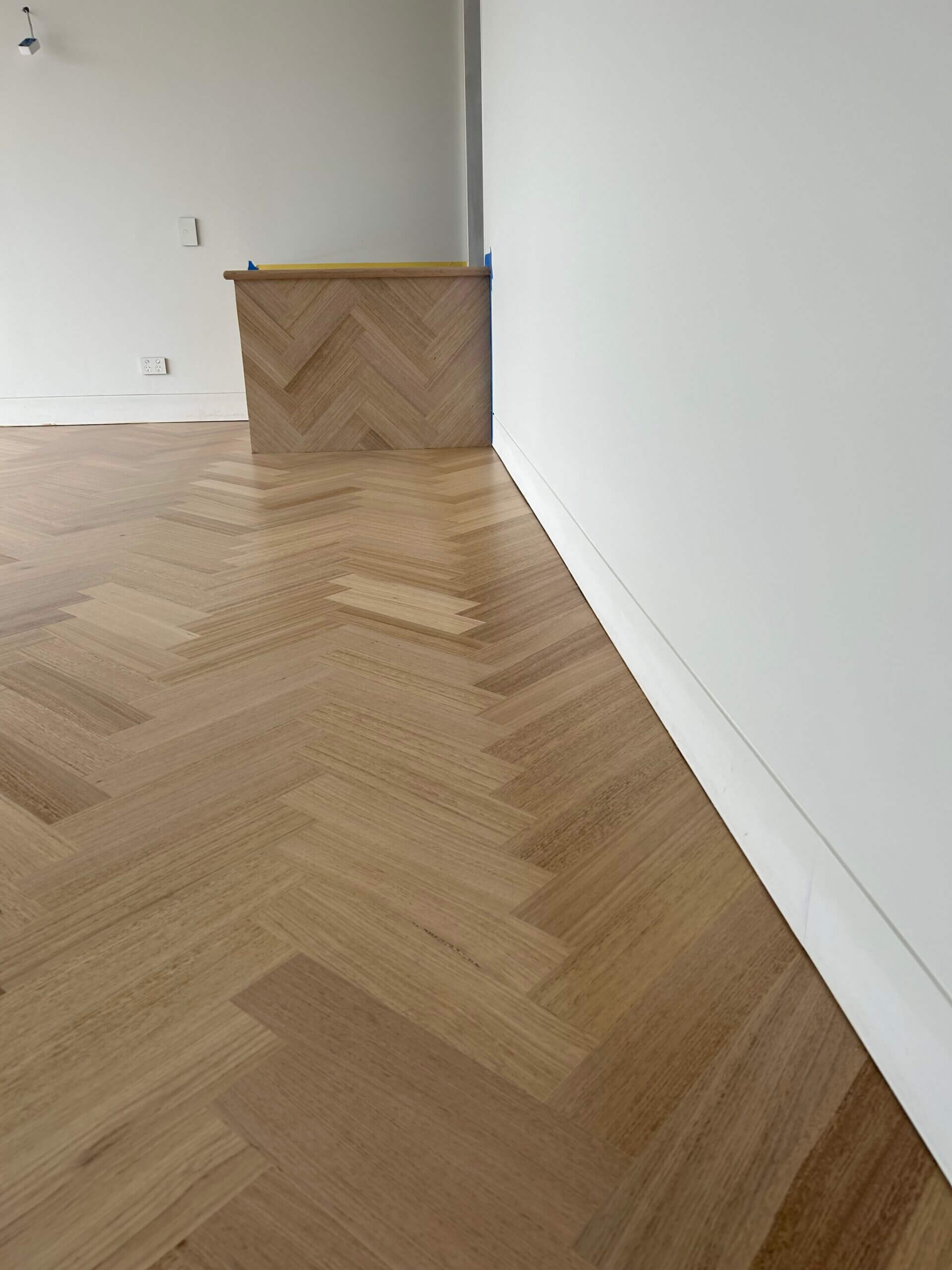 For this architect-designed home, FloorCraft supplied and installed custom-sized solid Tasmanian Oak parquetry across three levels, including two staircases and elevator detailing. The floor was finished with a white-toned polyurethane system to meet the client’s exact specifications. Despite a complex site layout and limited material availability, the team achieved a flawless, high-end finish that exceeded expectations.